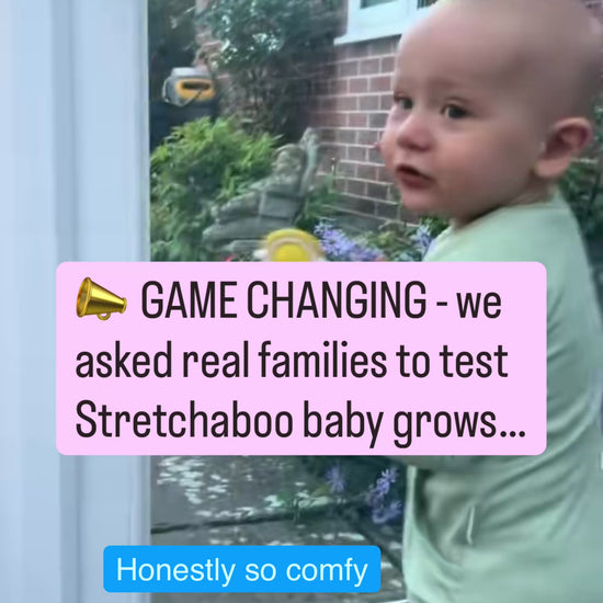 To put a Stretchaboo sleepsuit on, just pop the top over the head like a t-shirt.